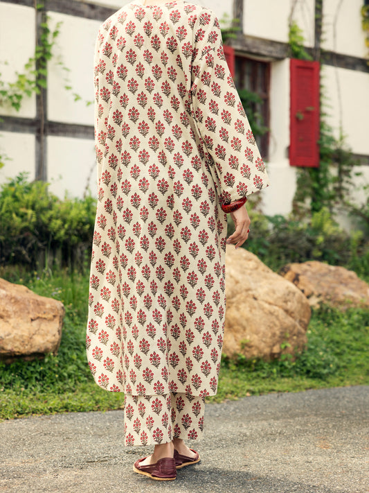 Cream Lawn Co-ord Set - ALP-2PS-SLKS-2073