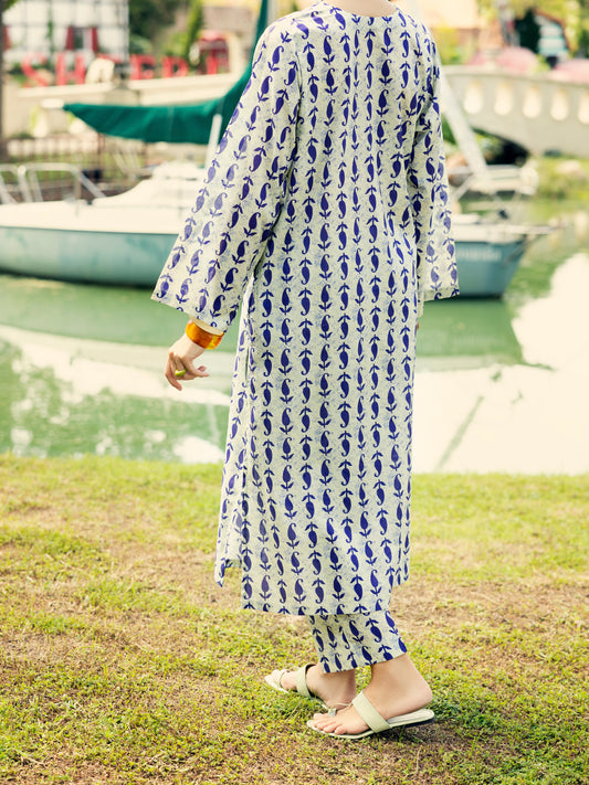Blue Lawn Co-ord Set - ALP-2PS-SLKS-2074