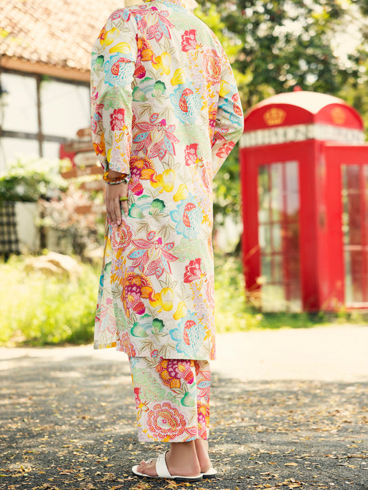 Multicolor Lawn Co-ord Set - ALP-2PS-SLKS-2092