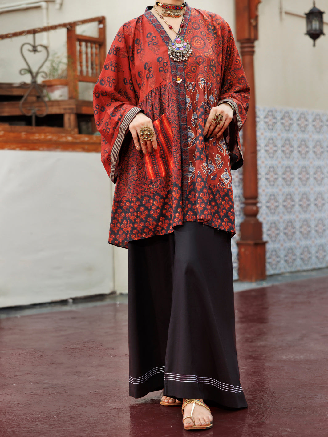 • Black Yarn Dyed Tunic - AL-LK-977 - Almirah Online