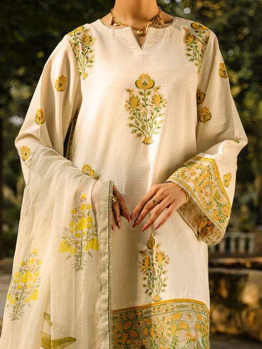 Cream Silk Lawn Stitched 3Pc - ALP-3PS-2362