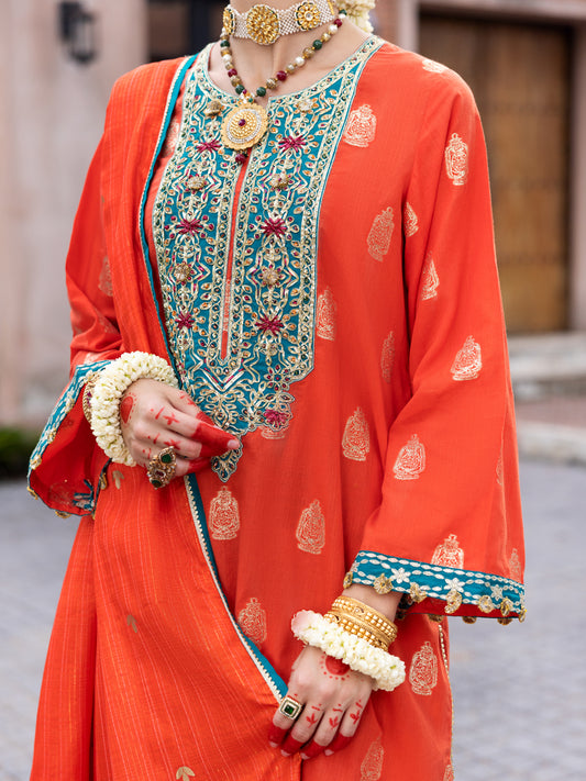 Orange Cotton Jacquard 3Pc Stitched - ALP-3PS-1856