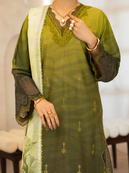 Mehndi Green Lawn Stitched 3PC - ALP-3PS-2379