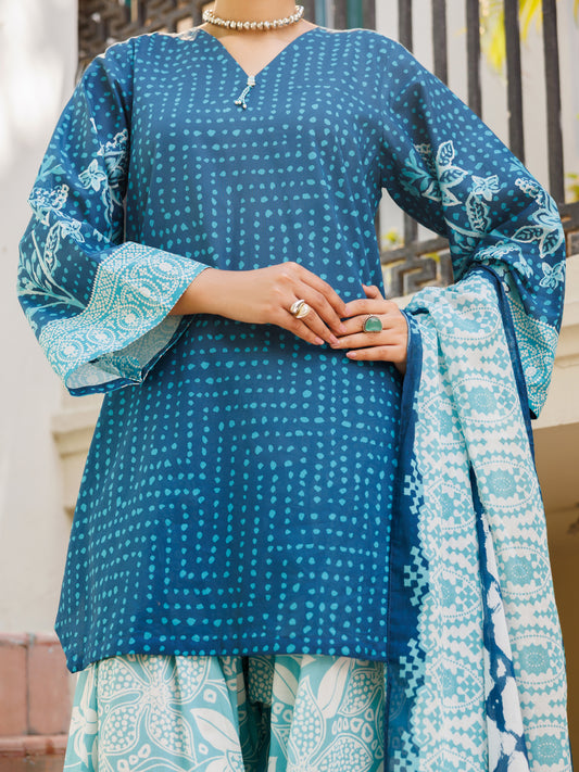 Teal Blue Lawn Stitched 3Pc - ALP-3PS-2559