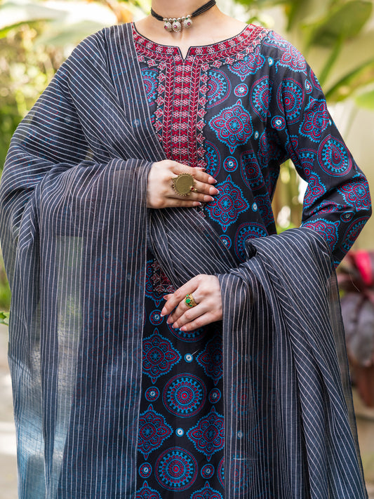 Black Lino Kara 3Pc Stitched - ALP-3PS-2353
