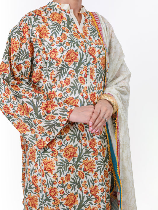 Cream Lawn 3Pc Unstitched - ALP-3PS-2224