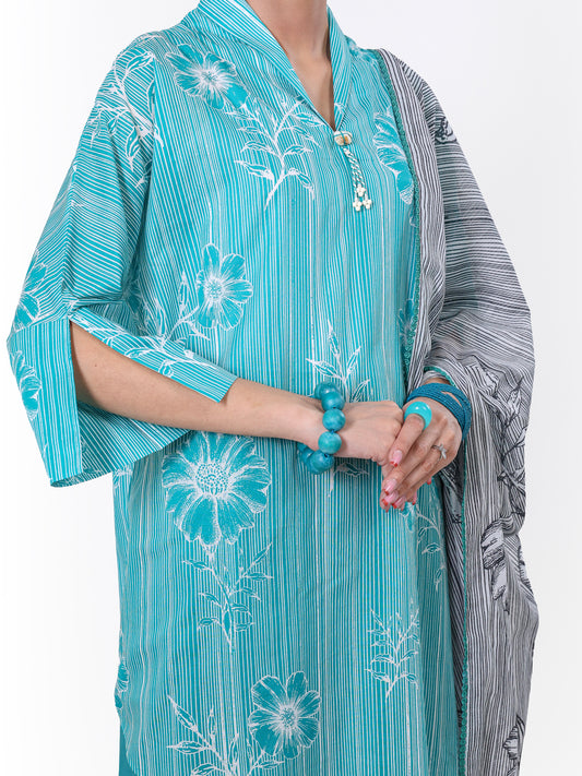 Aqua Blue Lawn 3Pc Unstitched - ALP-3PS-2408
