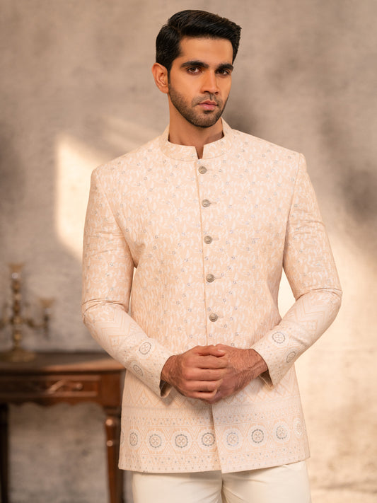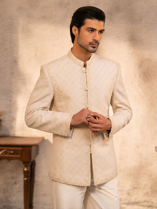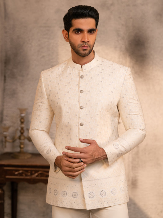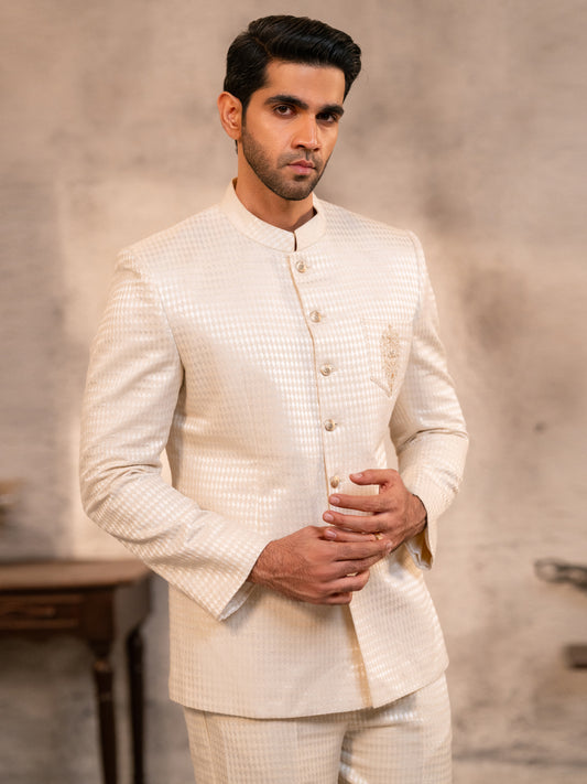 Off White Blended Unstitched Fabric - AL-UN-JHR-15042