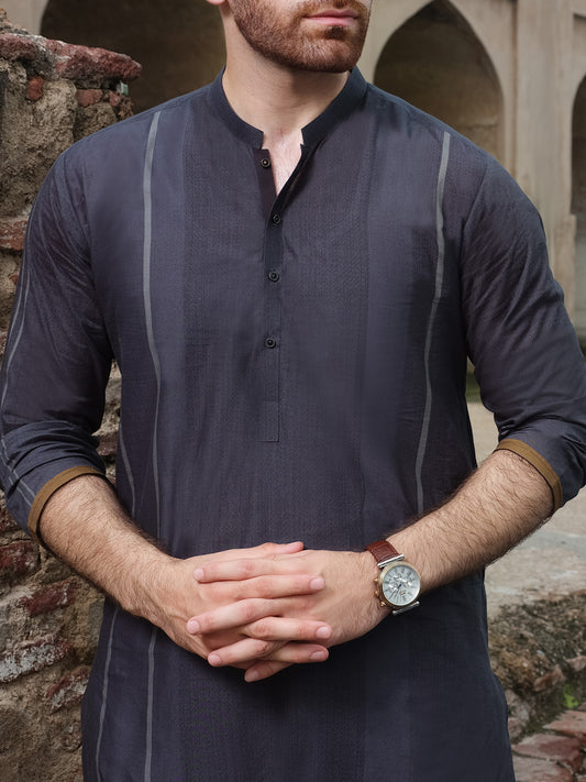 Ash Grey Blended Kameez Shalwar - AL-KS-3168