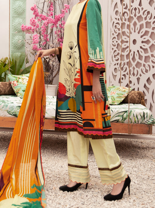 Beige Cambric 3Pc Unstitched - ALP-3PS-972