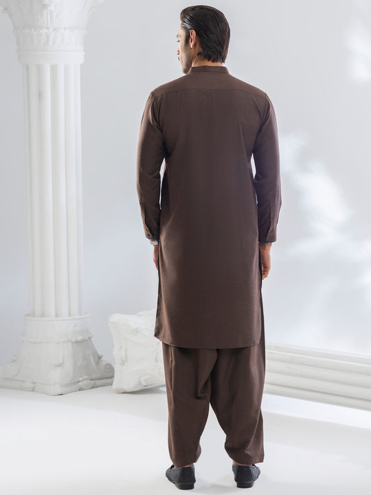Brown Blended Kameez Shalwar - AL-KS-3174A