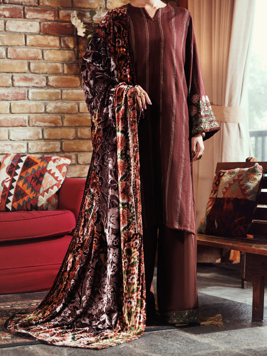 Brown Jacquard 3Pc Stitched - ALP-3PS-1170