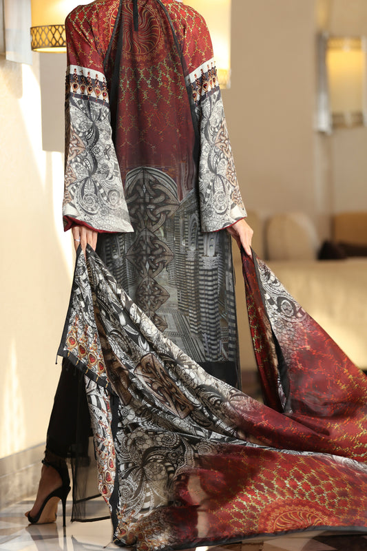 Brown Yarn Dyed 3Pc Unstitched - AWP-3PS-746