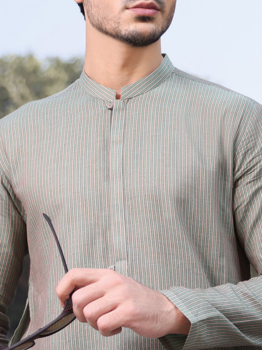 Green Cotton Semi-Formal Kurta - AL-K-1288