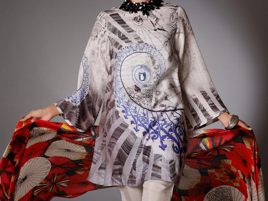 Grey Schiffli Lawn 3Pc Stitched - ALP-3PS-831