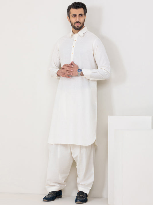 Off White Blended Kameez Shalwar - AL-KS-3048