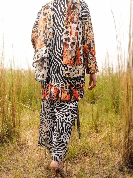 Black & White Silk 3Pc Formal Stitched - AL-3PS-LS-381