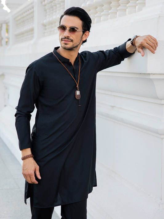 Black Blended Kurta - AL-K-1084B