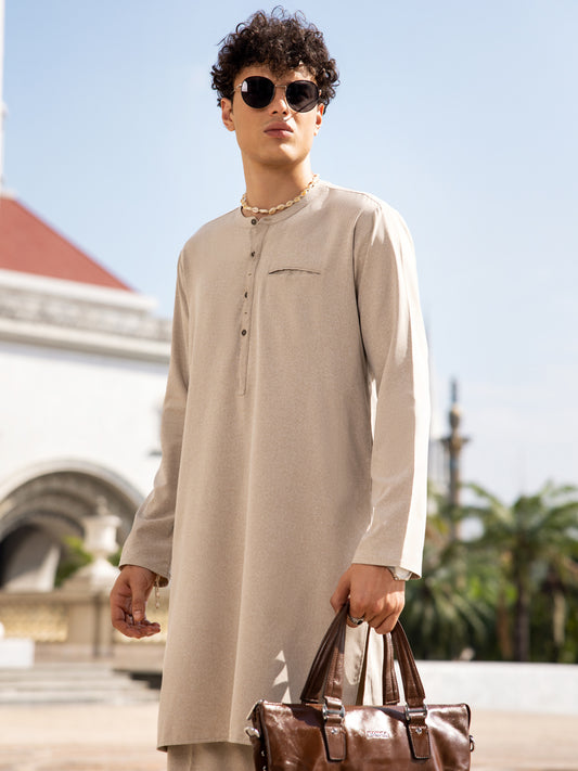 Sand Brown Blended Kurta Trouser - AL-KT-3043A