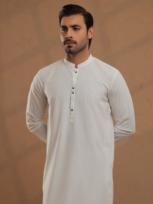 White Blended Men Unstitched Fabric - AL-UN-NZM-6150