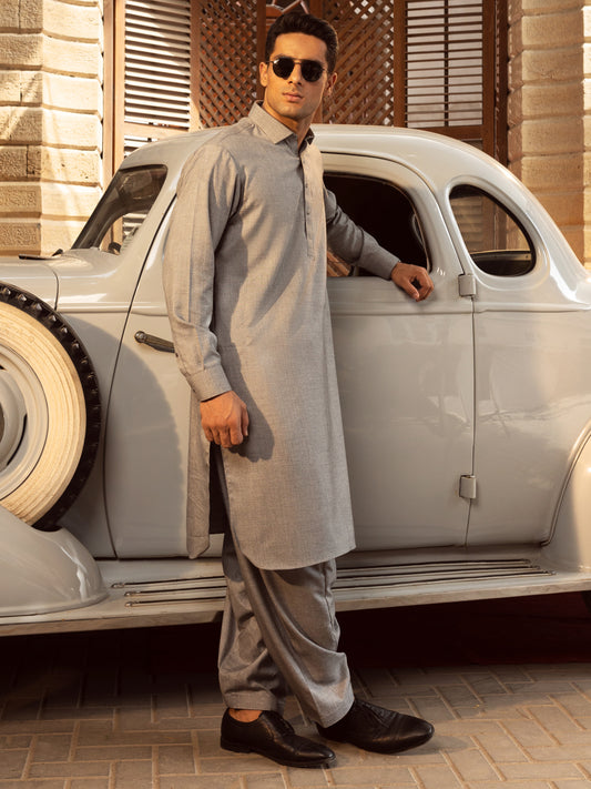 Ash Grey Blended Kameez Shalwar - ALBY-KS-004