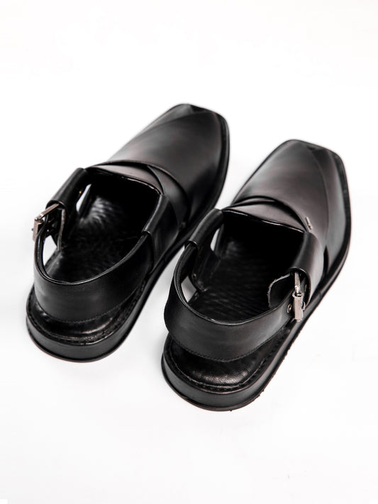 Black Leather Peshawari Sandals - AL-MFW-HC-173