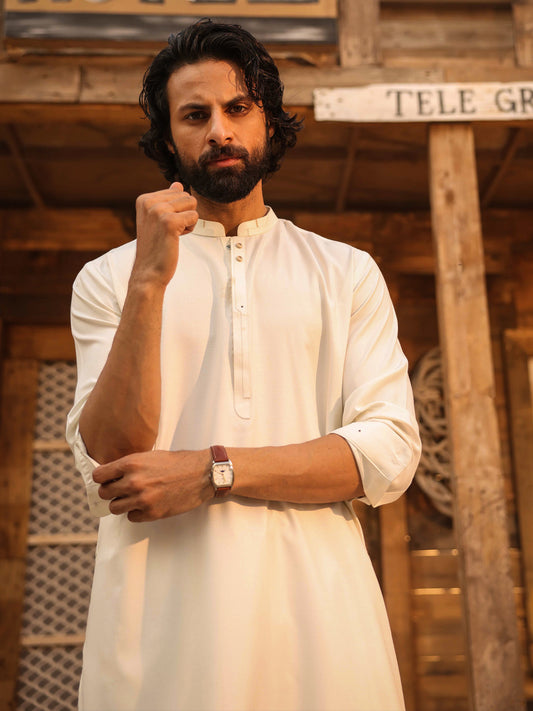 Off White Kameez Shalwar - AL-KS-3279