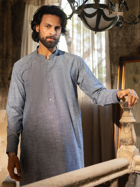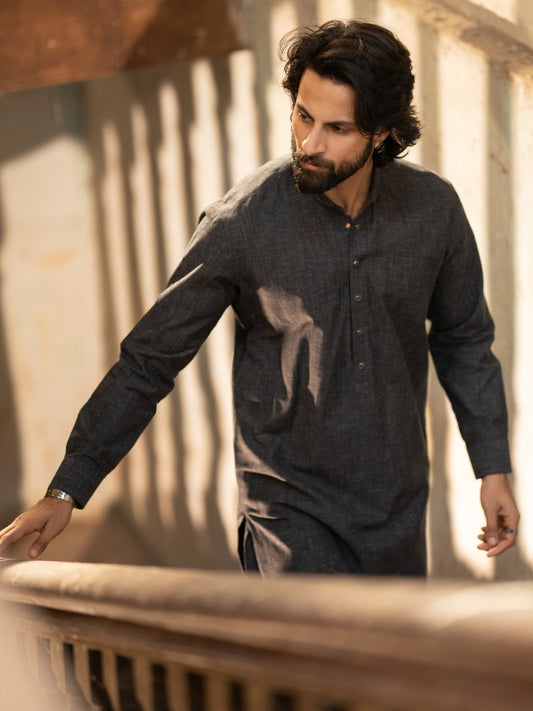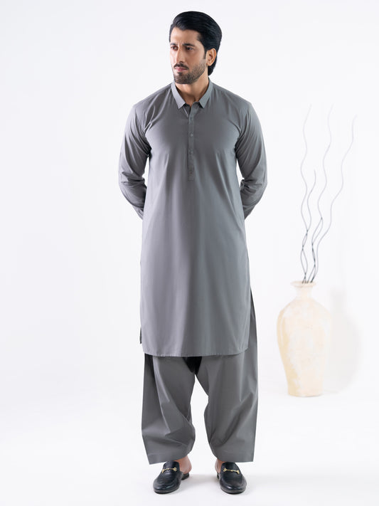 Charcoal Grey Cut & Sew Kameez Shalwar - AL-KS-3285