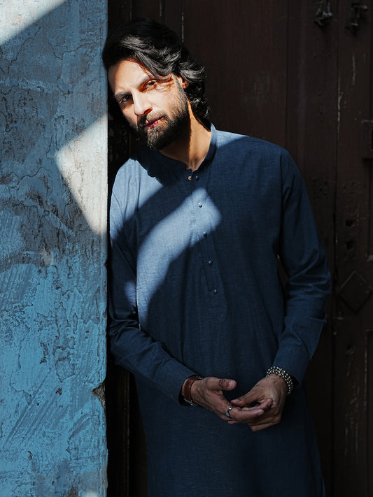 Dark Blue Semi-Formal Kameez Shalwar - AL-KS-3297