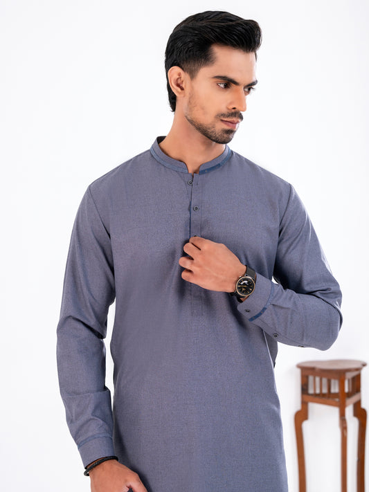 Charcoal Grey Blended Kameez Shalwar - AL-KS-3214