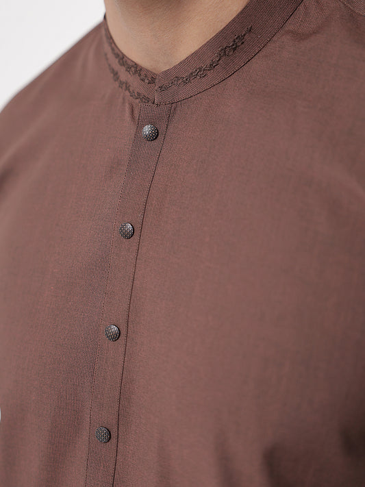 Dark Brown Cotton Kameez Shalwar - AL-KS-3242A