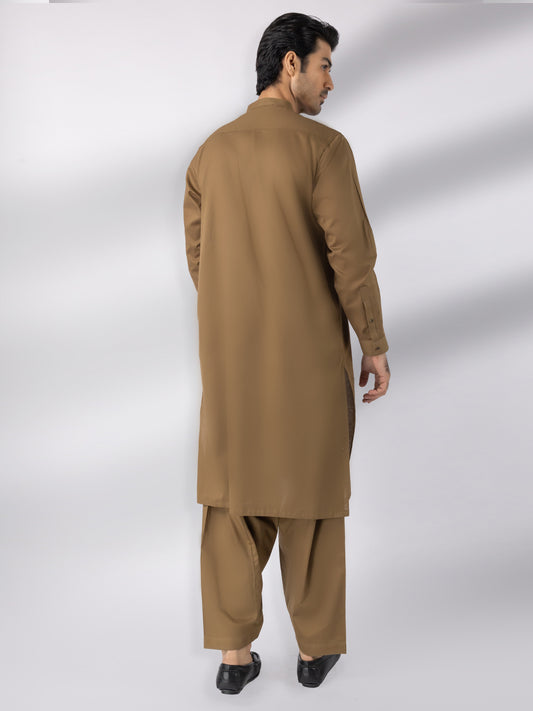Dark Brown Blended Kameez Shalwar - AL-KS-3225