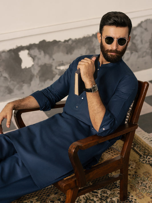 Dark Blue Cotton Kameez Shalwar - AL-KS-3242F