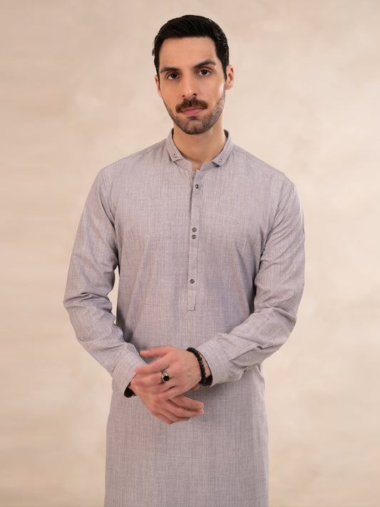 Ash Grey Cut & Sew Kameez Shalwar - AL-KS-3257