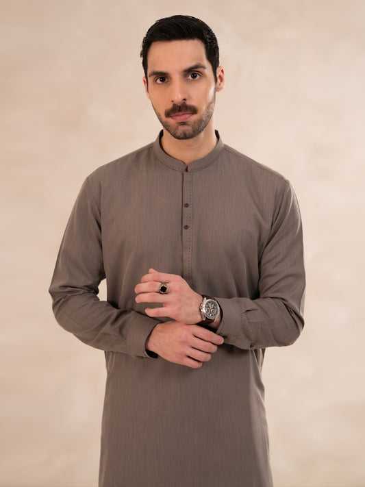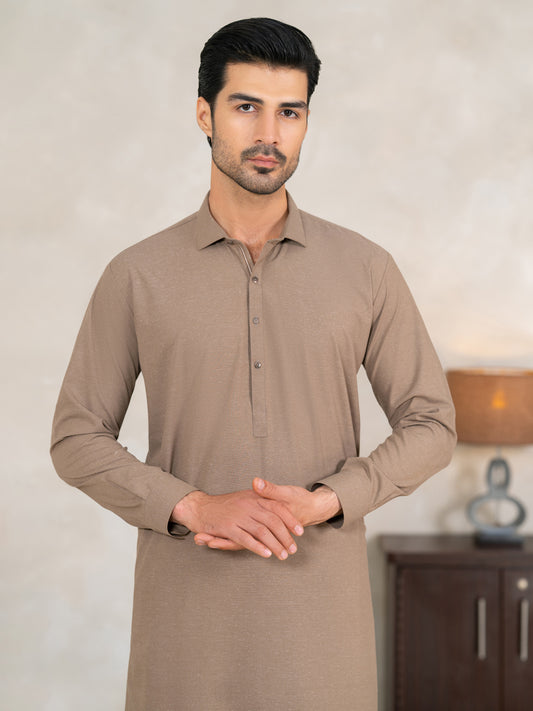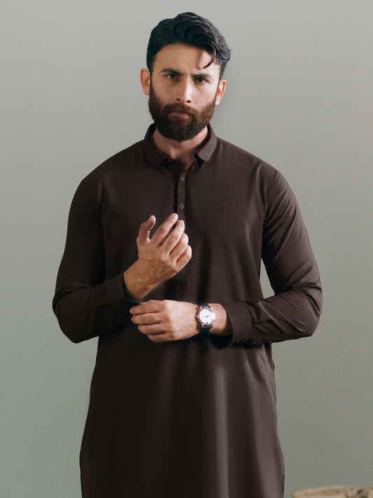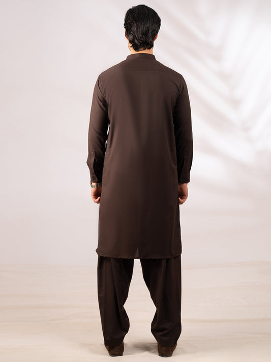 Brown Semi-Formal Kameez Shalwar - AL-KS-3343