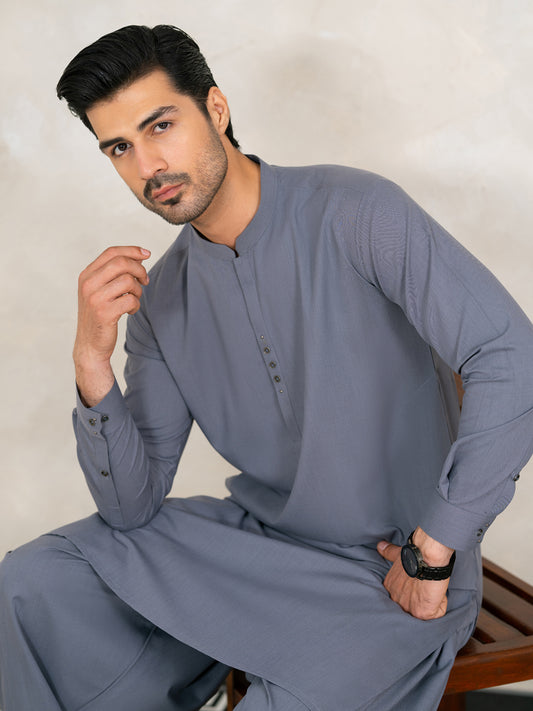 Bluish Grey Cut & Sew Kameez Shalwar - AL-KS-3354A