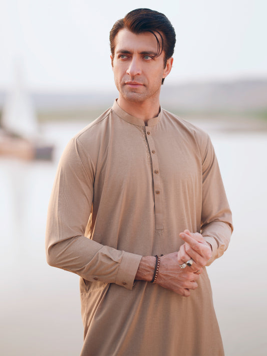 Light Brown Cut & Sew Kameez Shalwar - AL-KS-3299