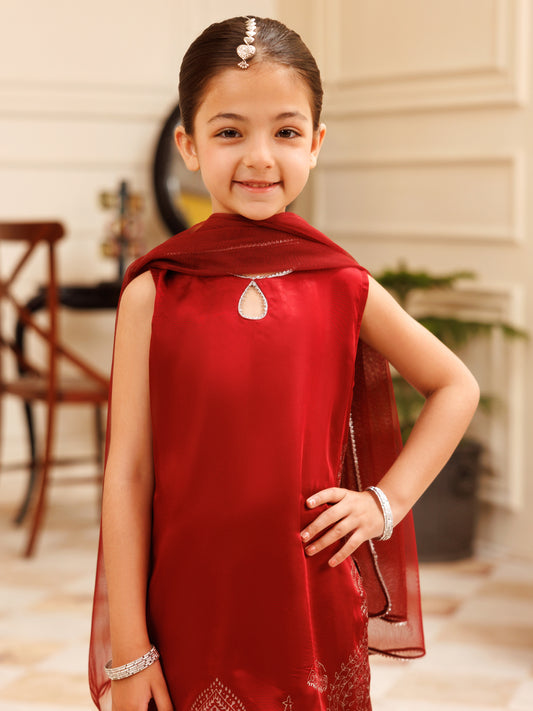 Maroon Charmeuse Silk Formal 3Pc Stitched - ALGR-3PS-LS-034