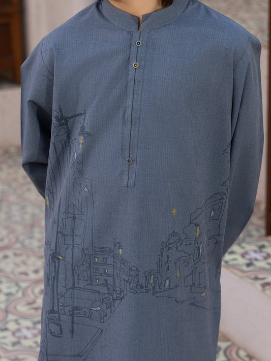 Light Grey Blended Kurta Trouser - ALBY-KT-007