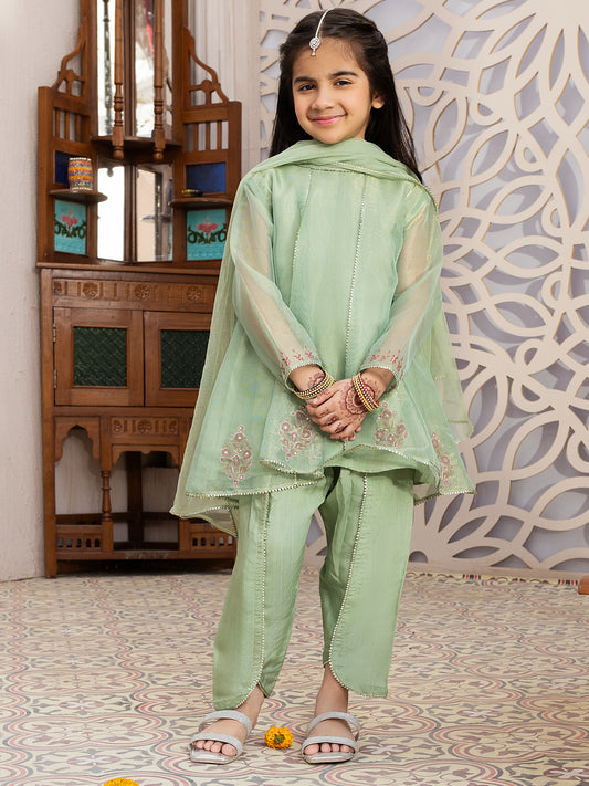 Light Green Shimmer Net 3Pc Stitched - ALGR-3PS-LS-010