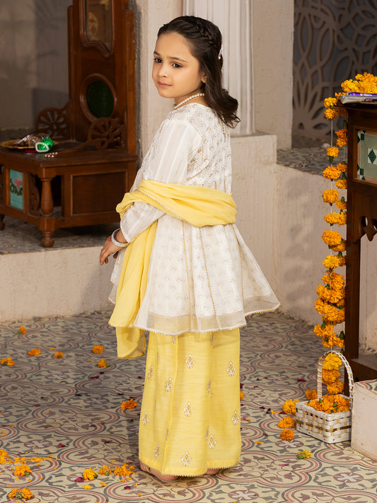 Off White 3Pc Stitched - ALGR-3PS-LS-005