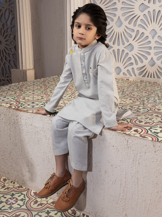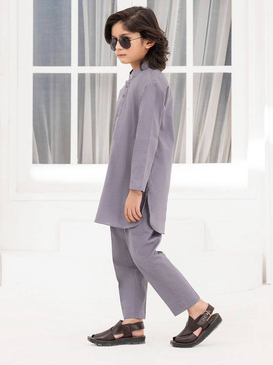 Ash Grey Blended Kameez Shalwar - ALBY-KS-004