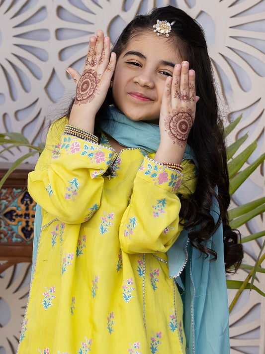 Lime Green Maple Silk 2 Piece Stitched - ALGR-3PS-LS-004