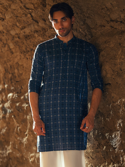 Blue Cotton Semi-Formal Kurta - AL-K-1287