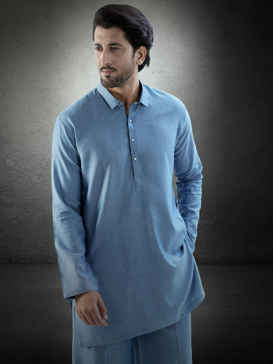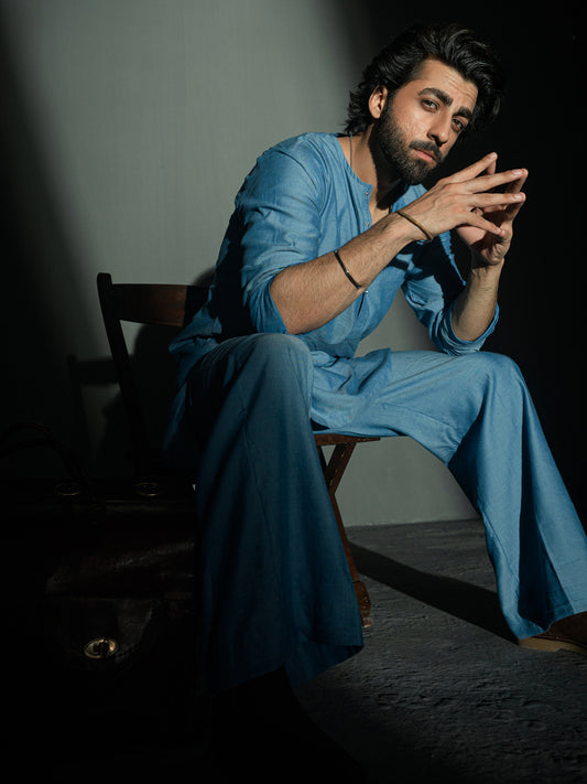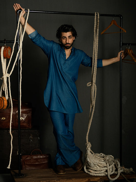 Light Blue Denim Kurta Trousers - AL-KT-3281