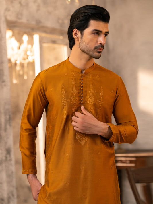 Mustard Formal Embroidered Kurta - AL-K-SP-069