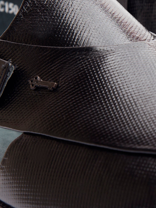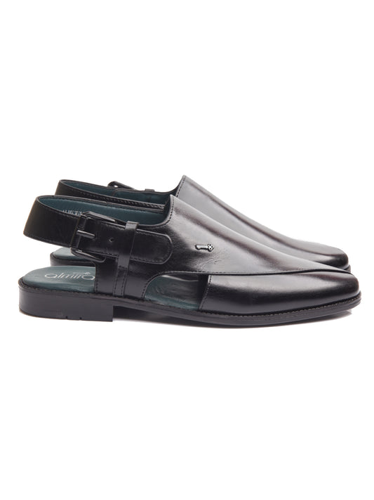 Black Leather Peshawari Chappal - AL-MFW-HC-147