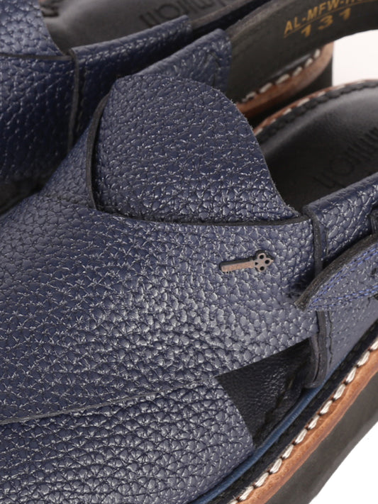 Blue Textured Leather Peshawari Chappal - AL-MFW-HCK-131