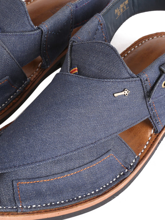 Blue Denim Peshawari Chappal - MFW-FB-081