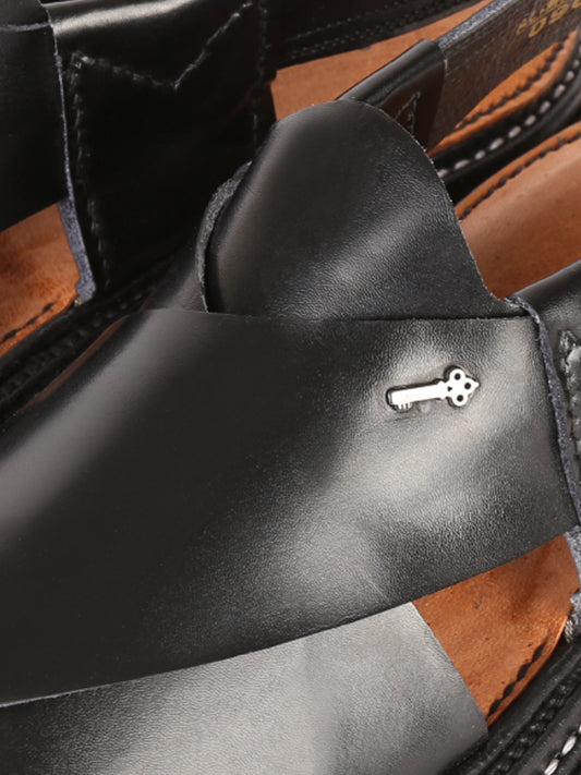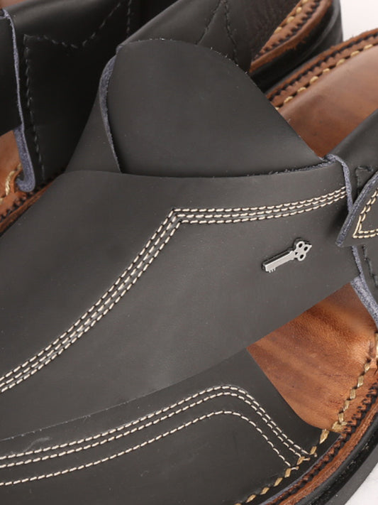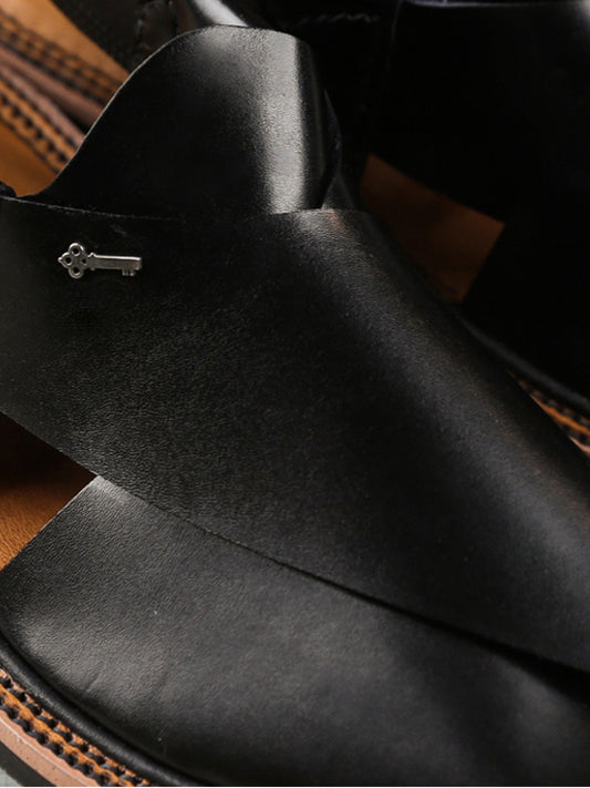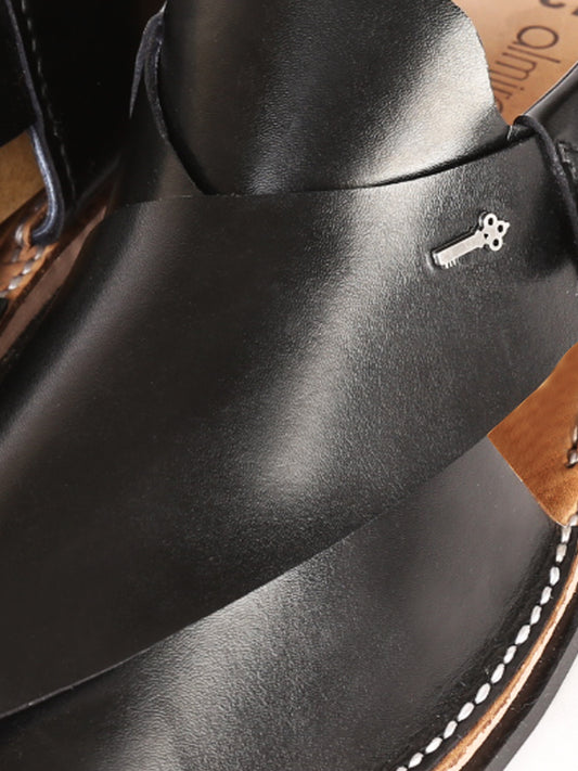 Black Leather Peshawari Chappal - AL-MFW-HC-096